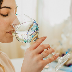 Our Master glass blowers begin with a single piece of molten, lead-free glass. And they take great care to make the base, stem and bottom of the bowl thicker so they’re stable on your table.